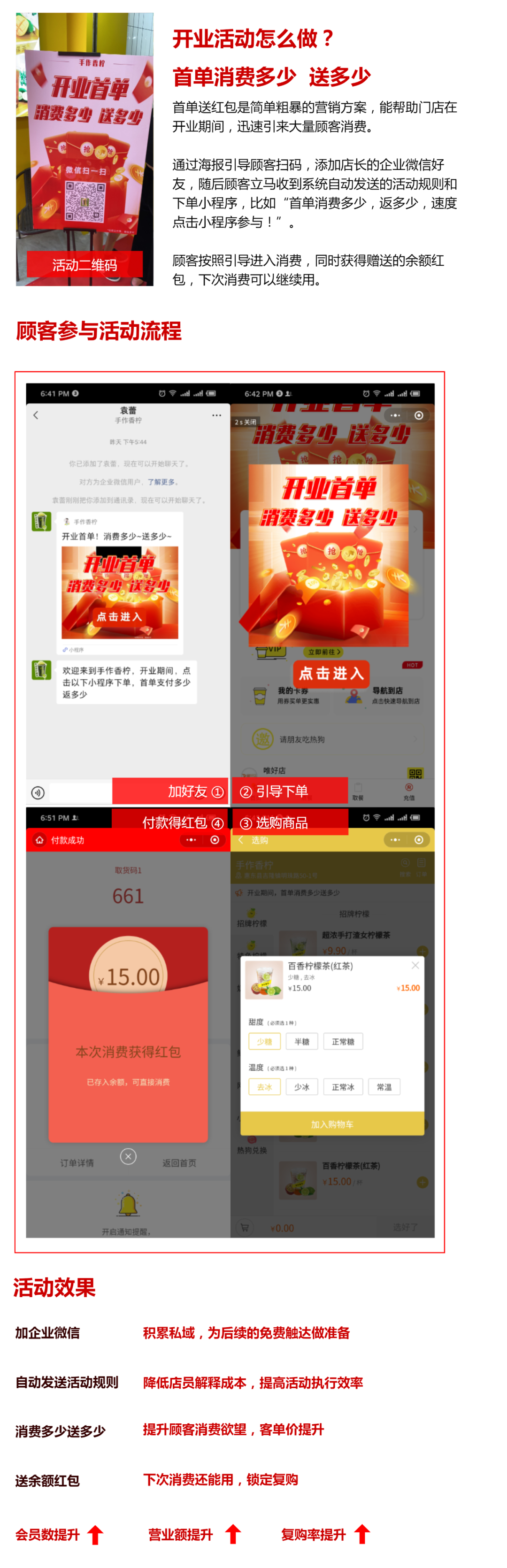 开业活动在运营上是一个非常关键的获取种子顾客的时机,我们需要通过设计合适的引流方案,让开业期间达到客流爆满的效果。